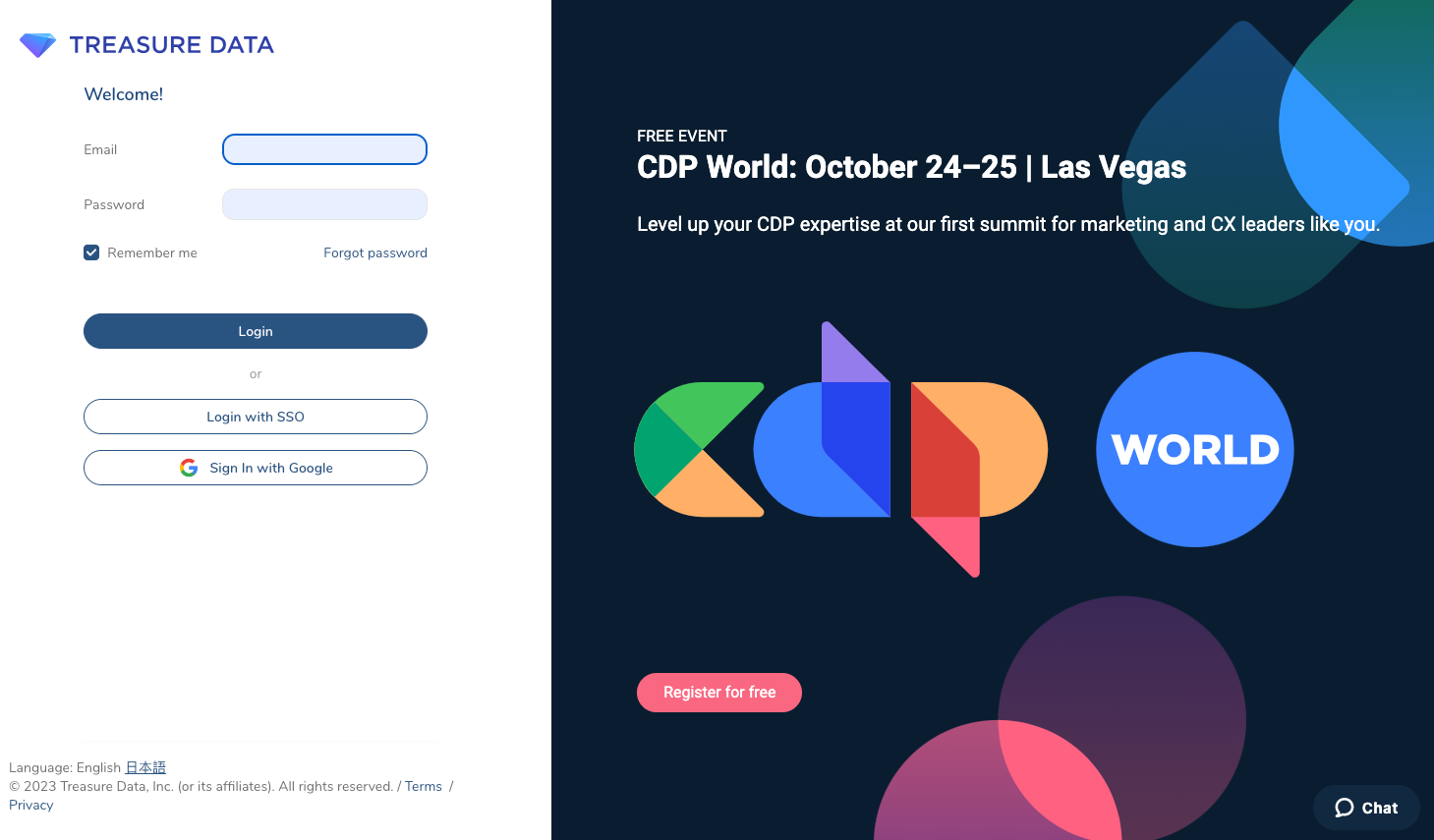 - Access the console directly using: https://console.us01.treasuredata.com/.